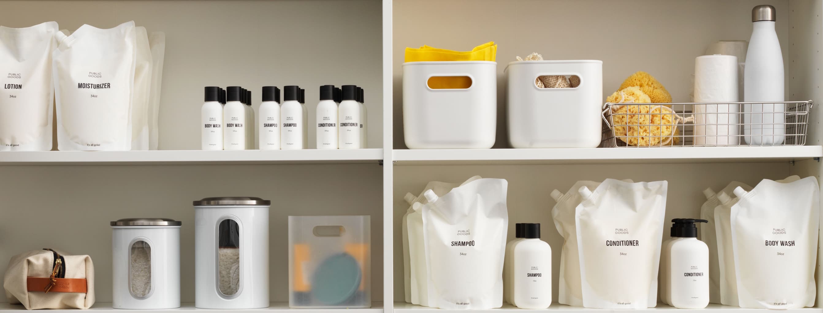 Public Goods uses biodegradable packaging and refillable products to cut packaging waste by 50% compared to traditional retail.